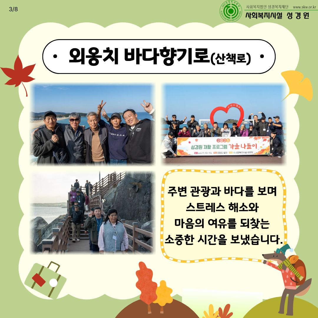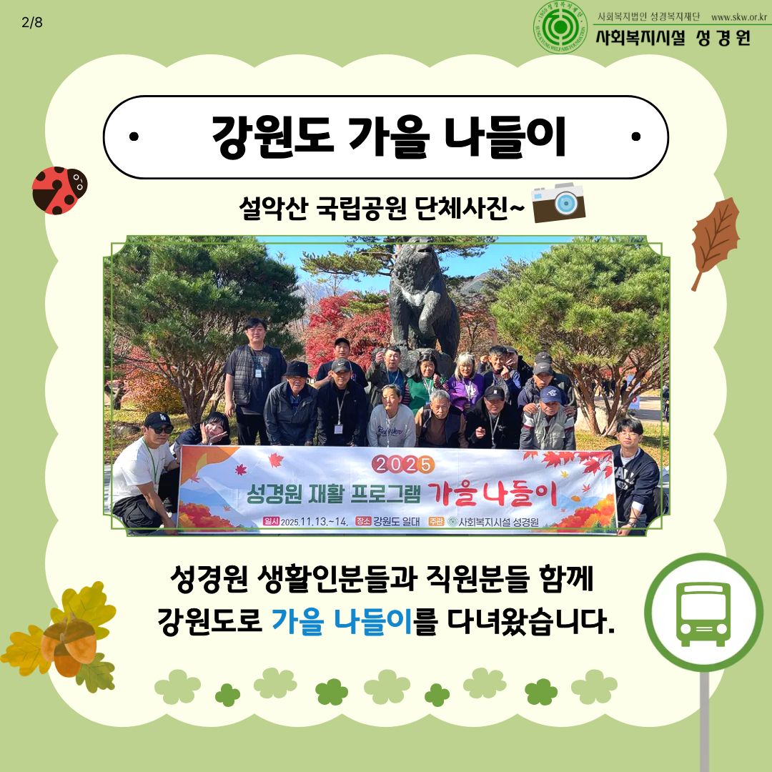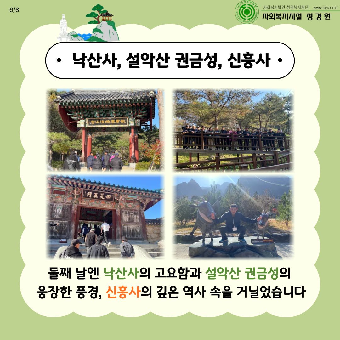 내용 : 강원도 속초로 가을 나들이 프로그램을 다녀왔습니다.